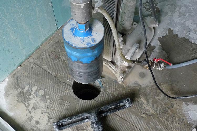 Izbedba radova za bušenje betona i cigle dijamantnom rotirajućum krunom za bušenje rupe u temelju, stropu, podu ili zidu kao otvori za ventilaciju i napu ili ugradnju instalacijskih vodova.